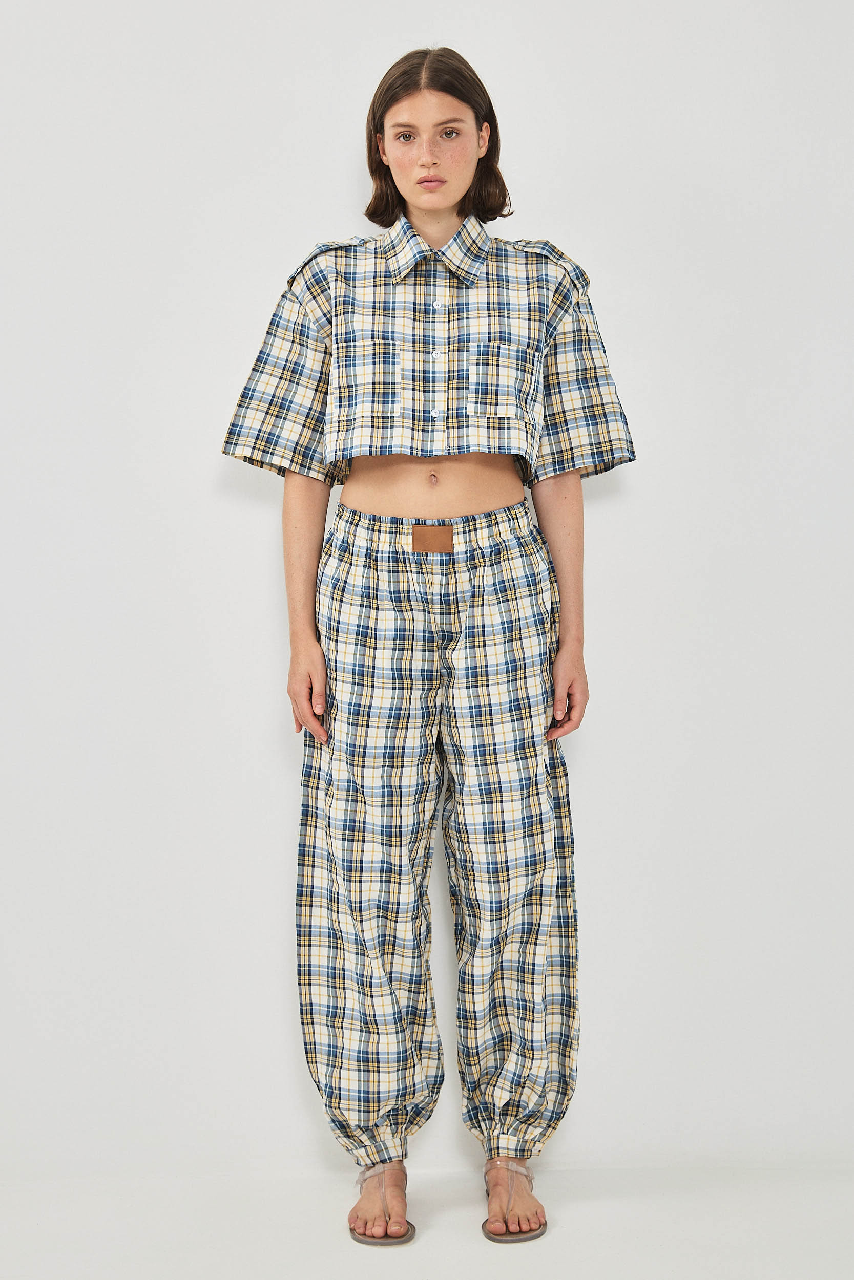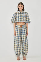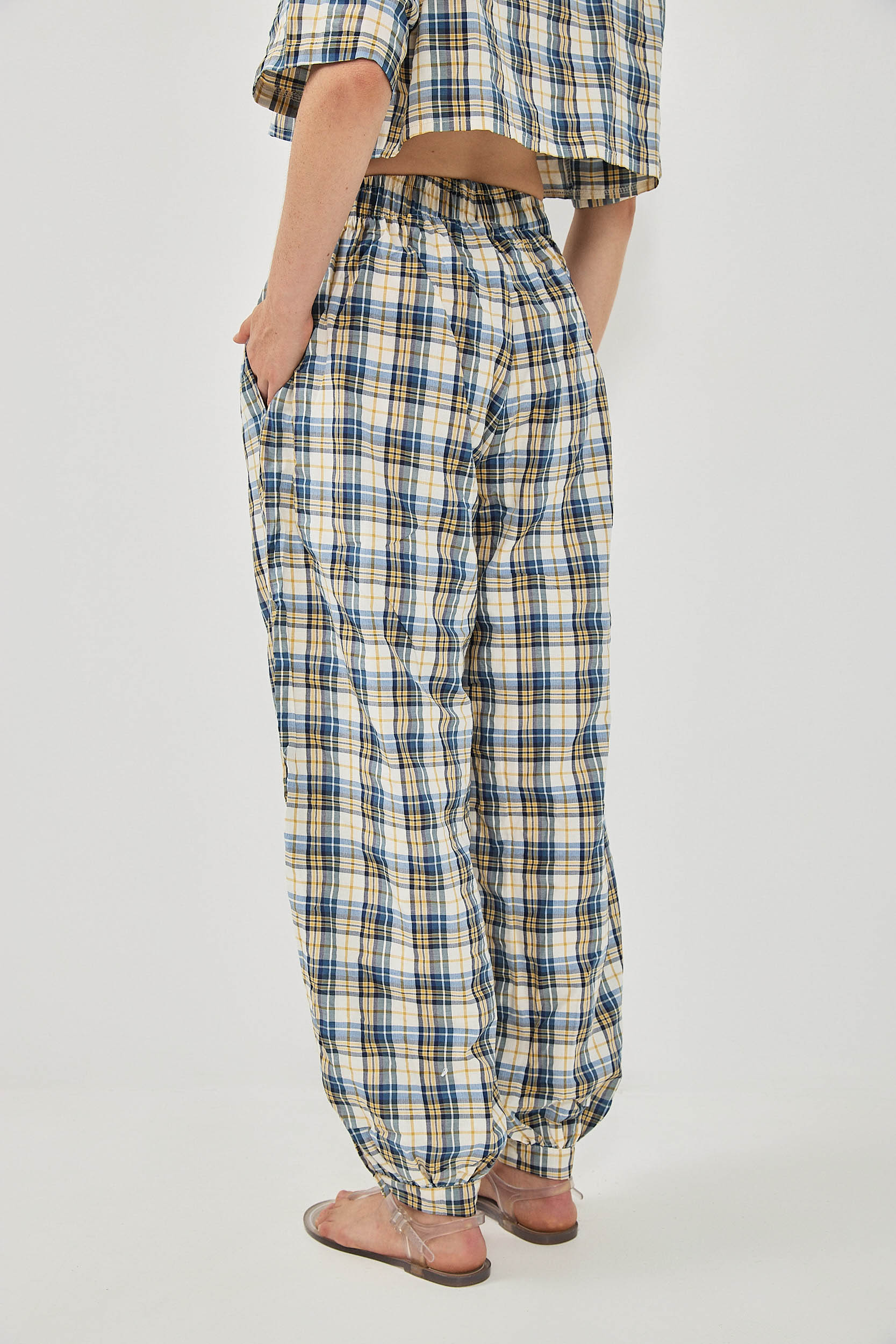 מכנסי בלון עם חגורת גומי וכיסים .