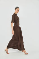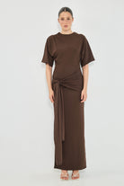שמלה באורך מקסי עם שרוולים באורך מרפק .