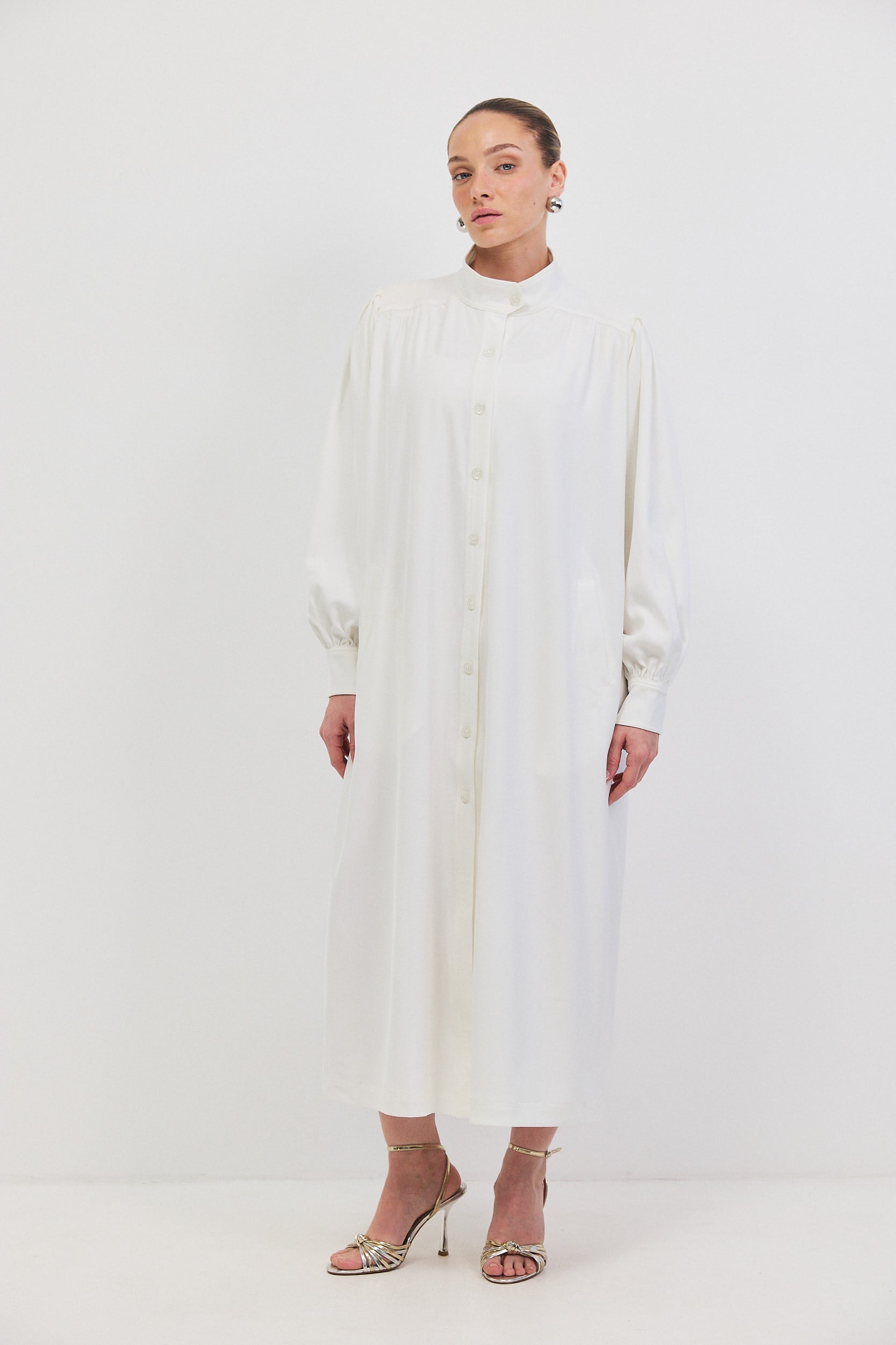 שמלת ג'קט באורך מידי עם כפתורים וצווארון גבוה