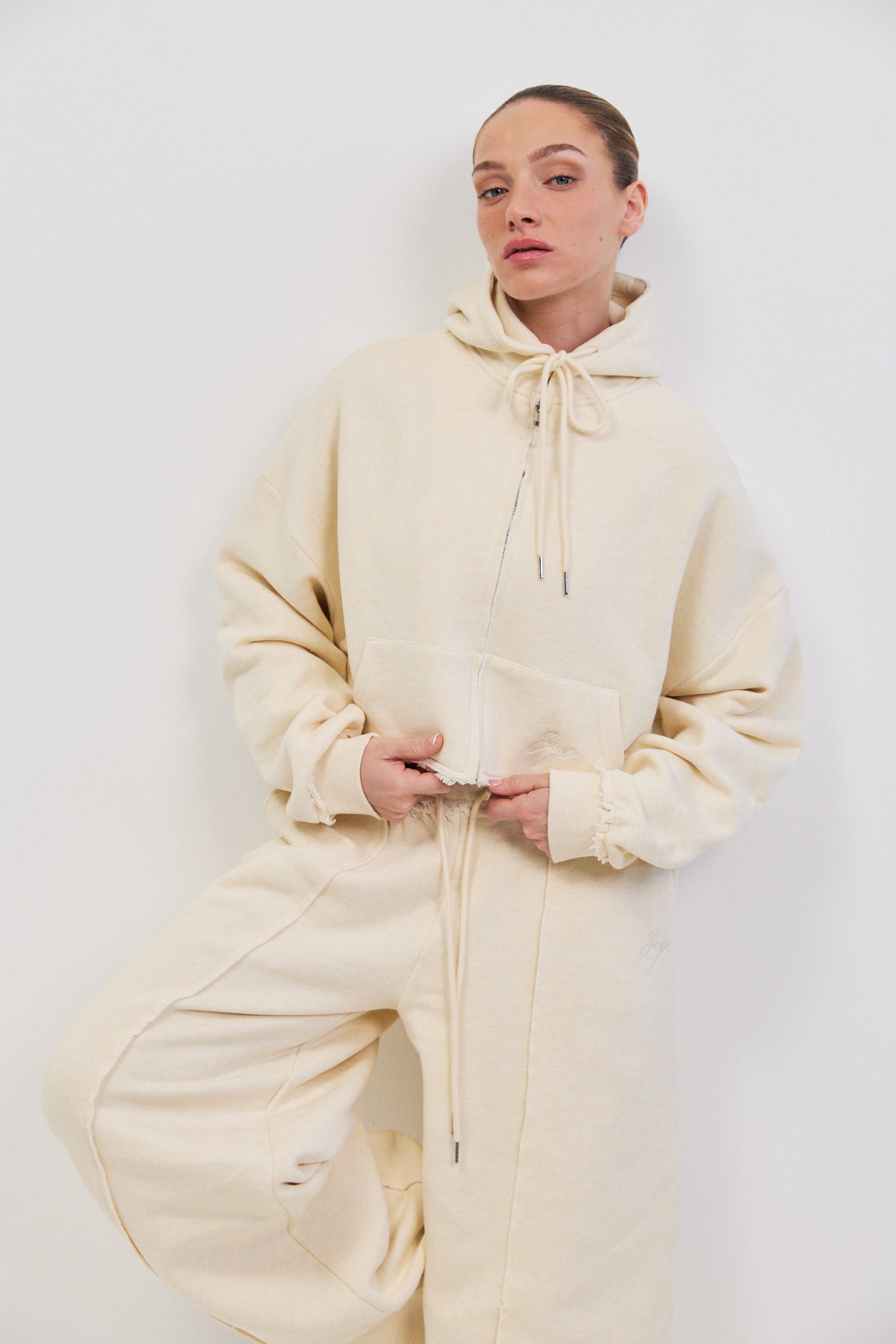 ג'קט קרופ עם רוכסן בשילוב כובע .