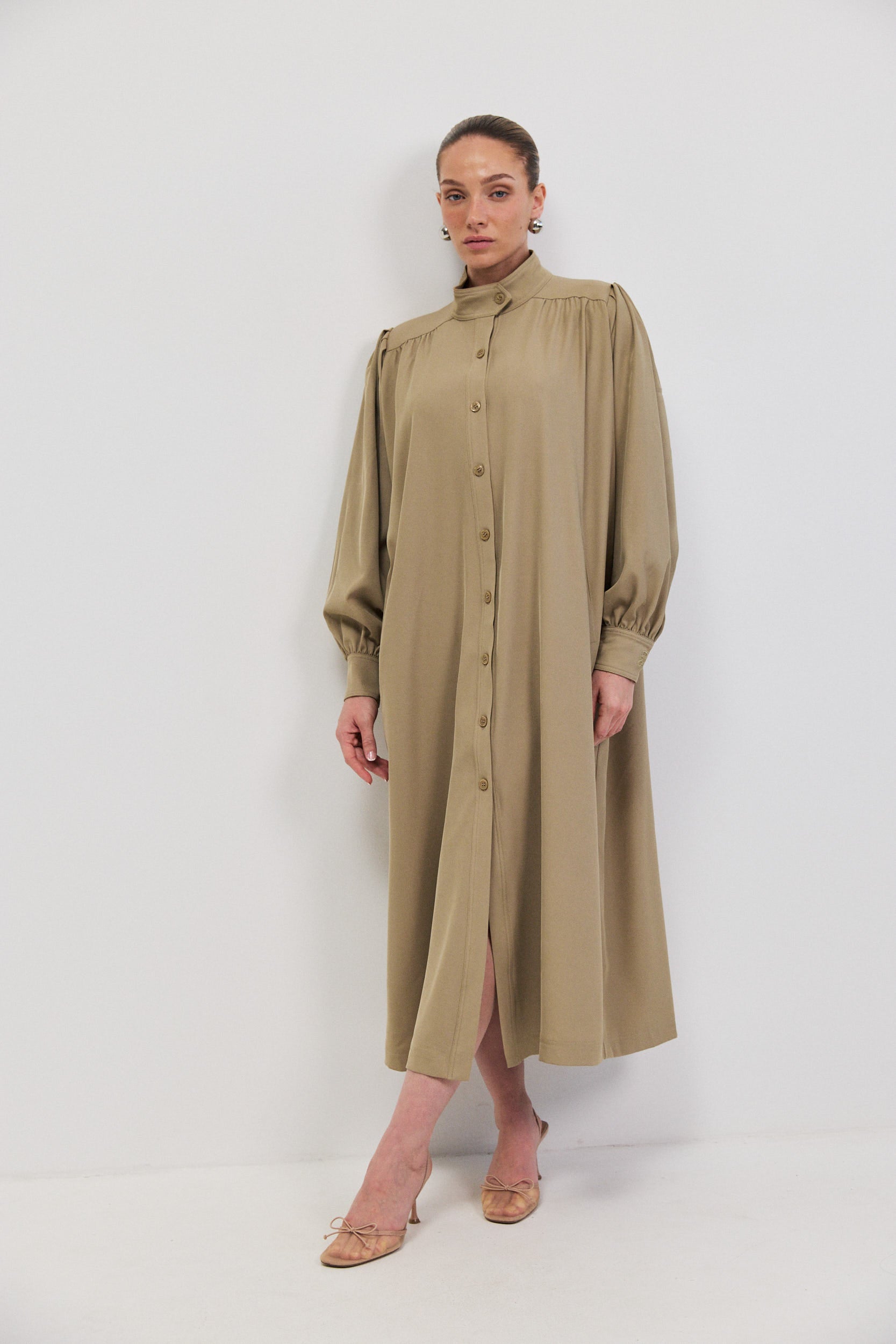 שמלת ג'קט באורך מידי עם כפתורים וצווארון גבוה