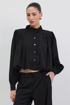 חולצת ג'קט עם כפתורים וצווארון גבוה