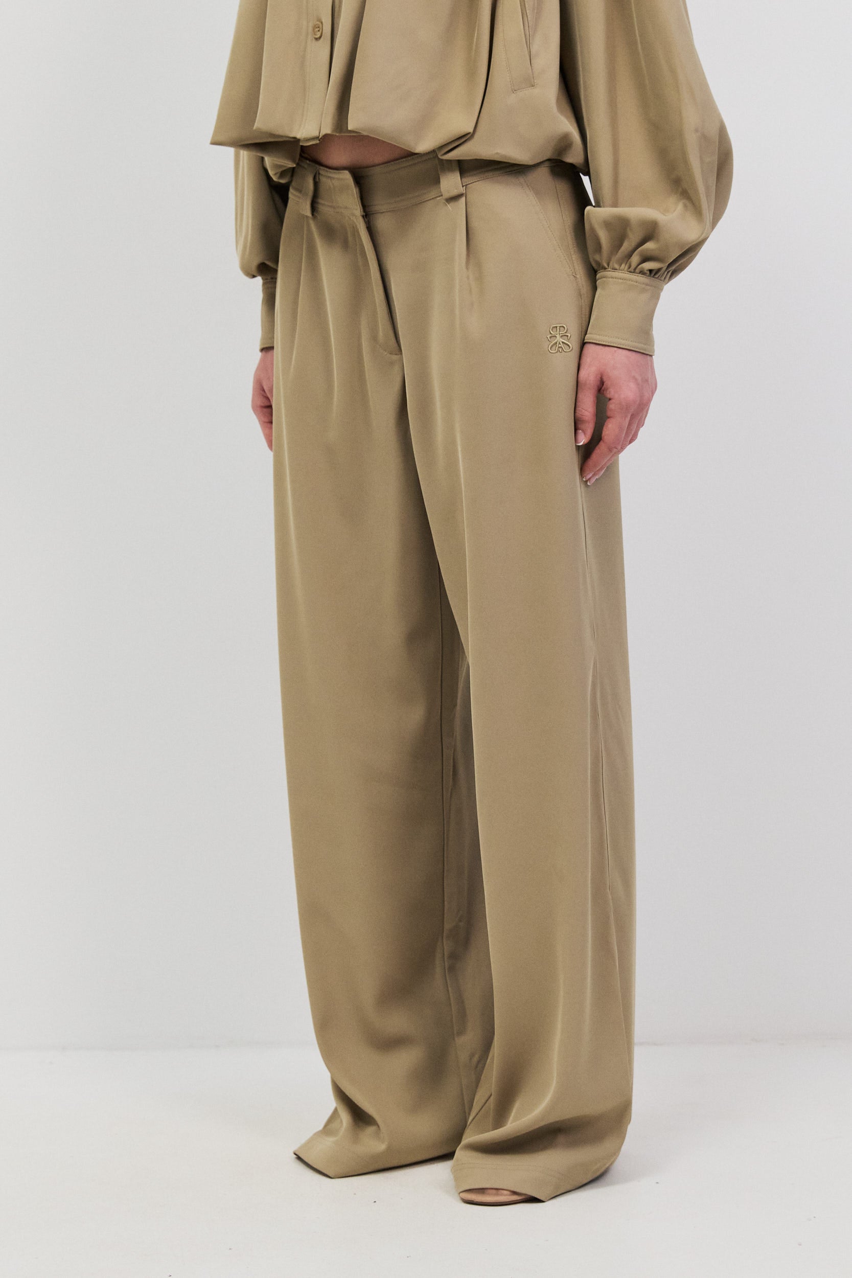 מכנסיים מחויטים בגזרה ישרה עם רקמת לוגו .