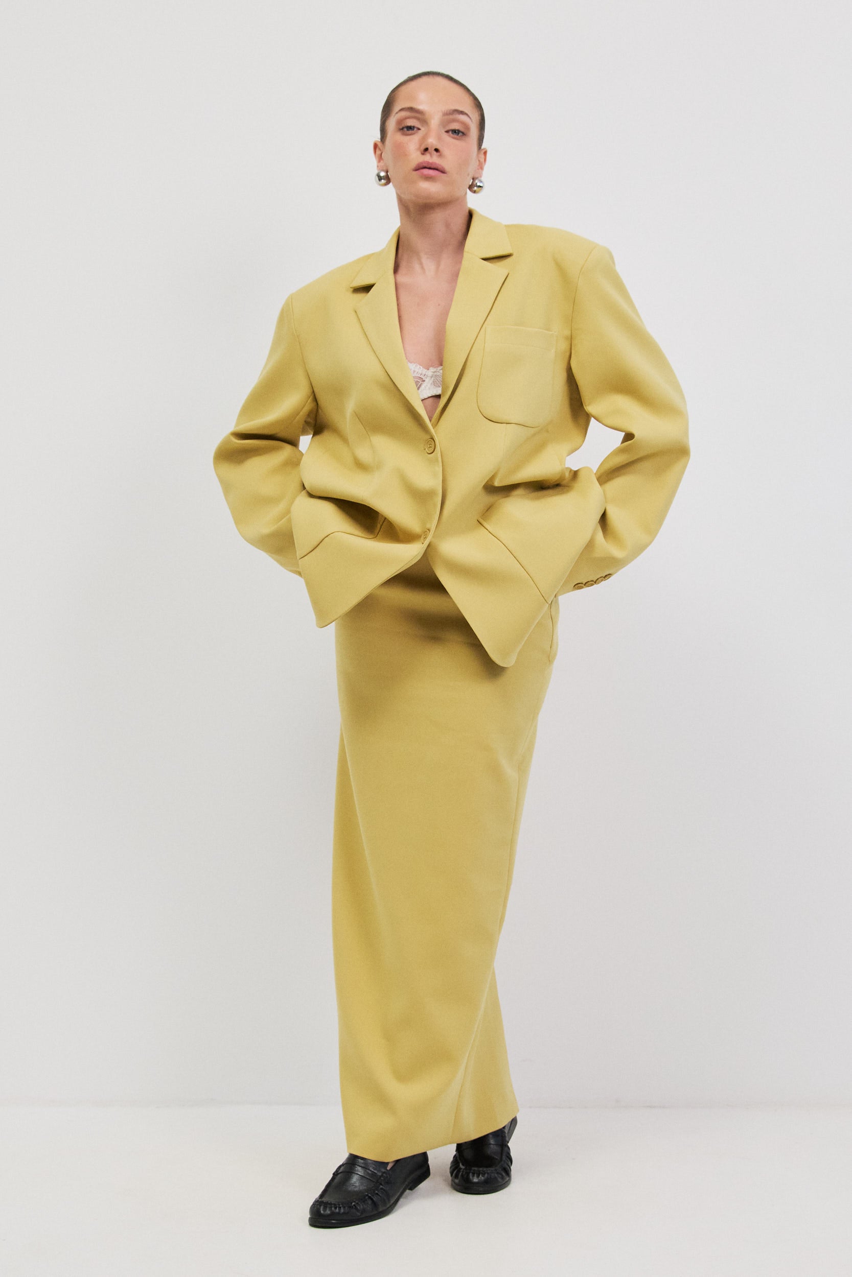 Tailored skirt with a side zipper.